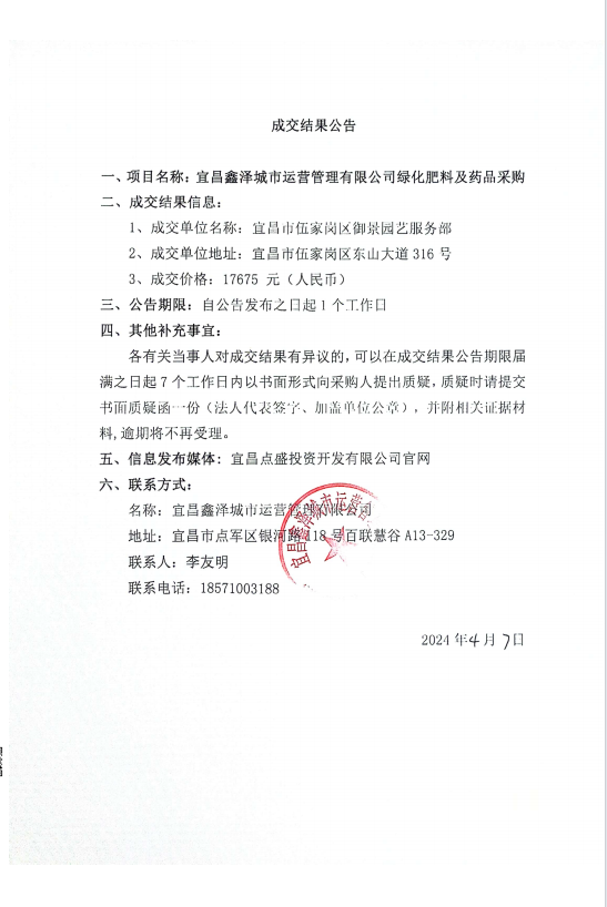 宜昌鑫澤城市運(yùn)營(yíng)管理有限公司綠化肥料及藥品采購(gòu)項(xiàng)目詢價(jià)公告