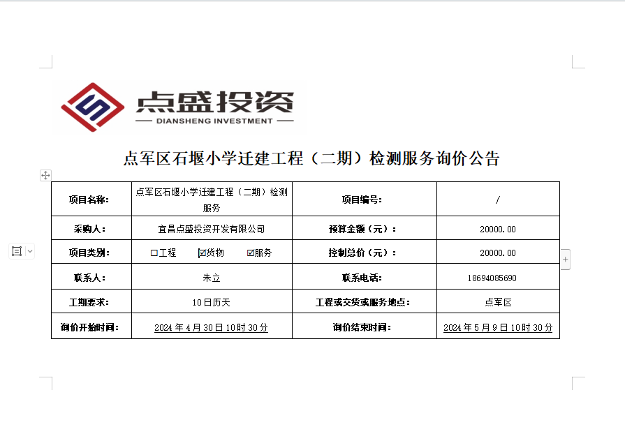 點軍區石堰小學遷建工程(二期)檢測服務詢價公告