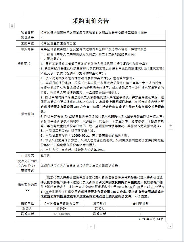 點(diǎn)軍區(qū)錦繡城南棚戶區(qū)安置房改造項(xiàng)目B區(qū)物業(yè)服務(wù)中心裝修工程設(shè)計(jì)服務(wù)詢價(jià)公告