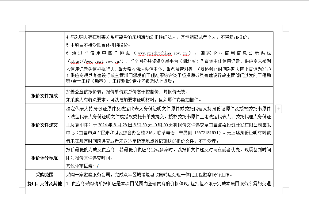 點軍區城鎮垃圾收集轉運處理一體化工程勘察服務詢價公告