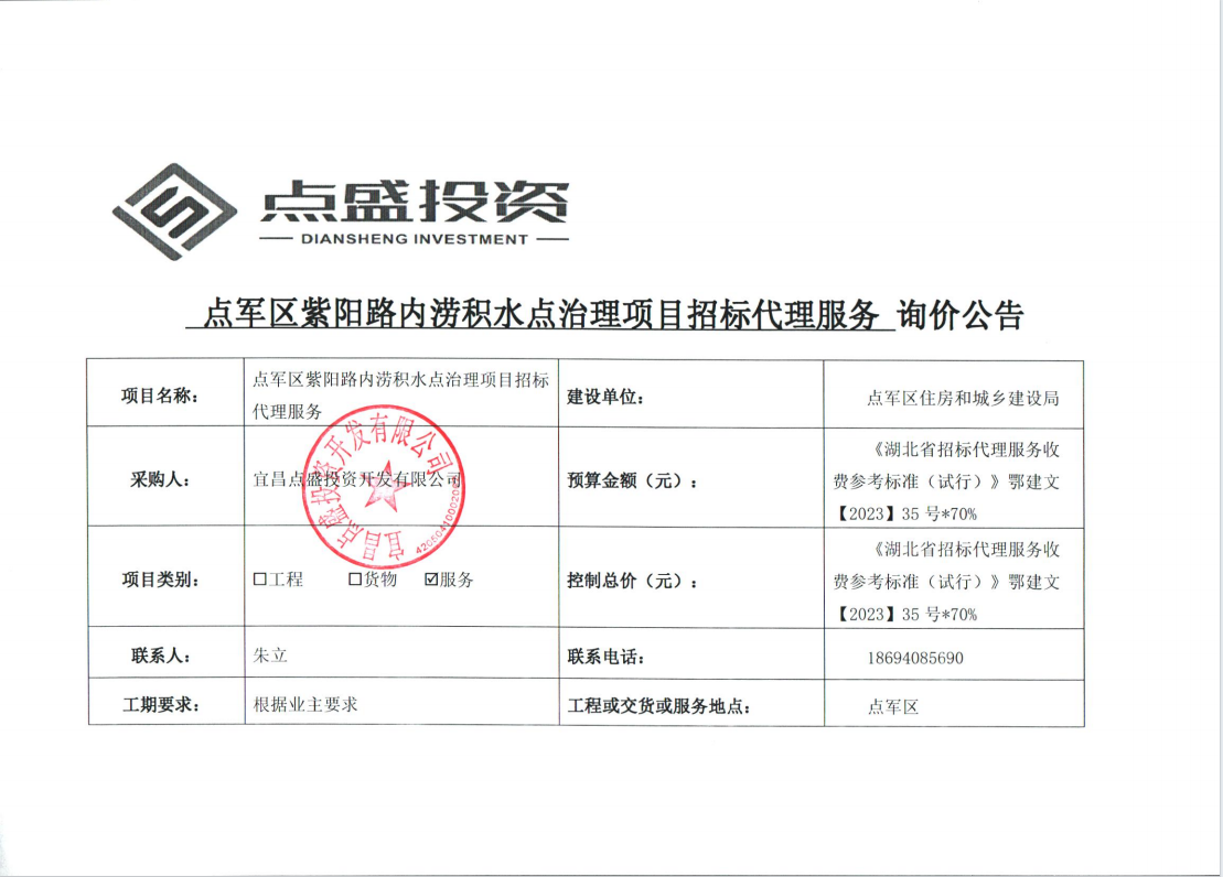 點(diǎn)軍區(qū)紫陽(yáng)路內(nèi)澇積水點(diǎn)治理項(xiàng)目招標(biāo)代理服務(wù)詢價(jià)公告
