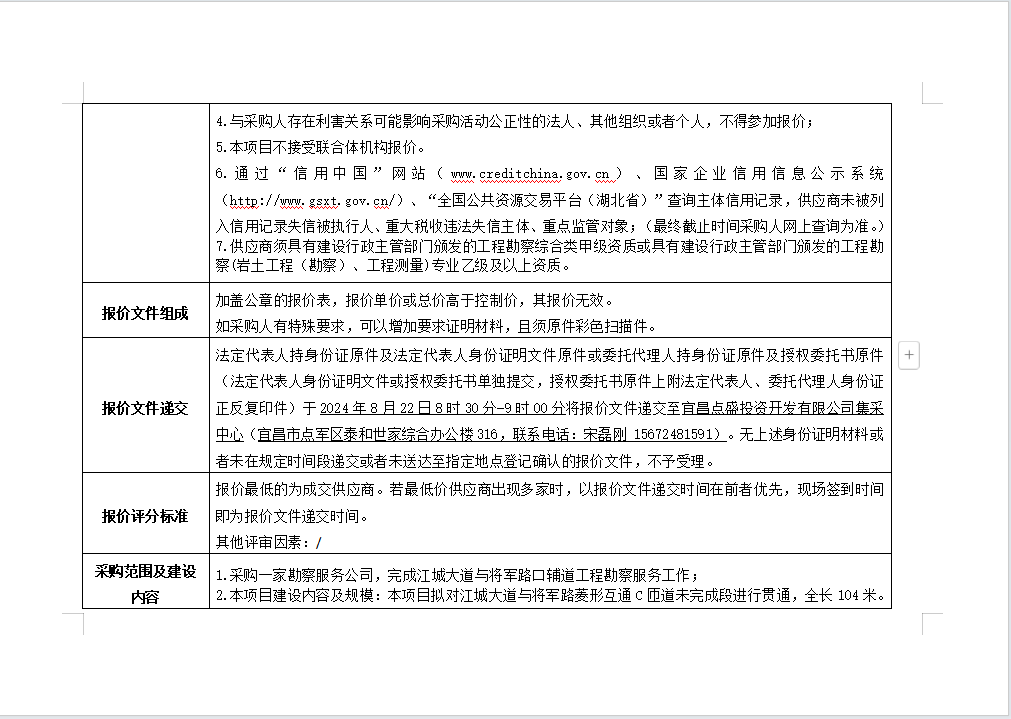 江城大道與將軍路口輔道工程勘察服務詢價公告