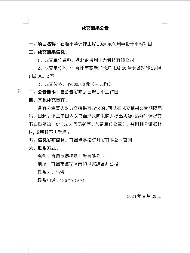 發布時間:2024/8/29 來源:宜昌點盛投資開發有限公司 訪問:983