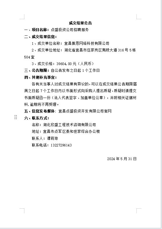 發布時間:2024/5/31 來源:宜昌點盛投資開發有限公司 訪問:2801